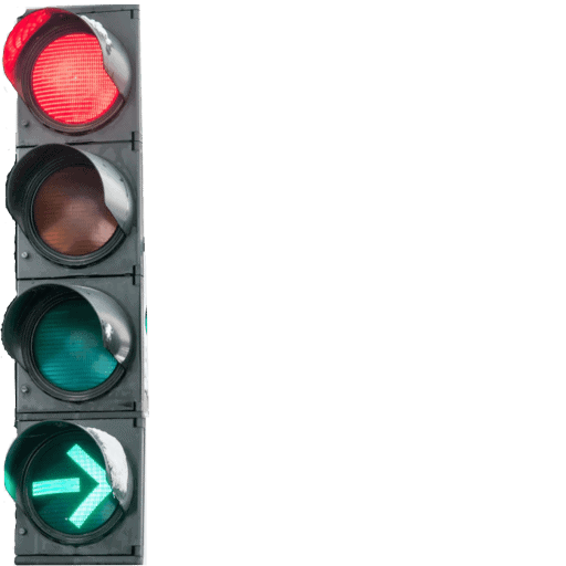 Le feu orange signifie qu’il est interdit de franchir la ligne d’arrêt ou de dépasser le feu en général s’il n’y a pas de ligne. Toutefois, si le feu orange commence à peine à s’allumer et que tu es trop proche du feu pour pouvoir freiner sans constituer de danger, tu peux encore traverser le carrefour.