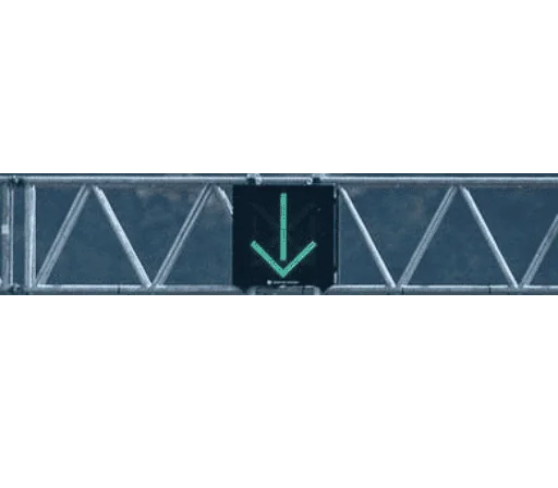 Une flèche verte pointant vers le bas signifie qu’il est permis de circuler sur la voie indiquée par la flèche.
