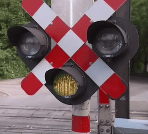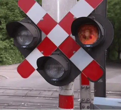 Si les deux lumières rouges supérieures clignotent en alternance, tu n’as pas le droit de traverser le passage à niveau.
